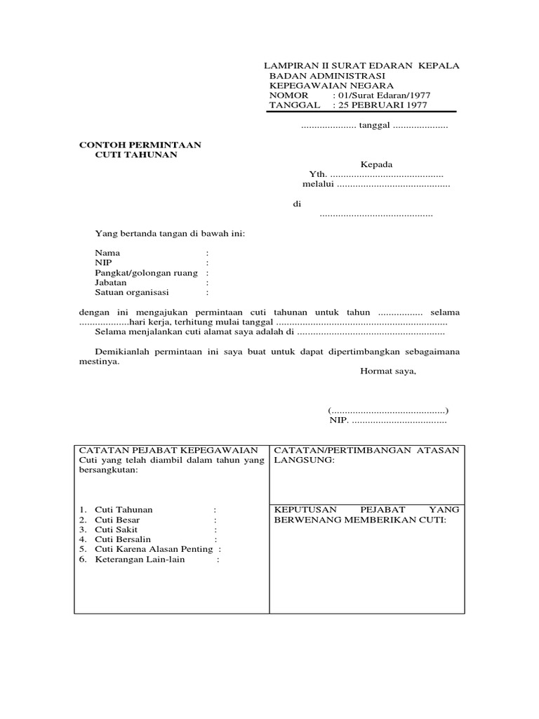 Contoh surat cuti kerja 1.